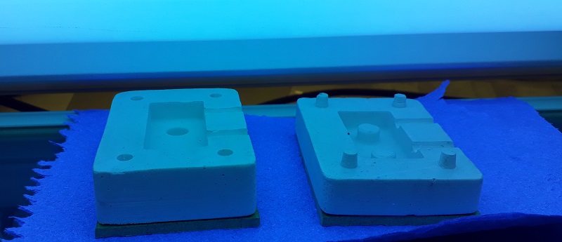 See here my finished negative forms. Think they look good enough for the next step. But they were very flexible so I had to cover the form with a back of wood.