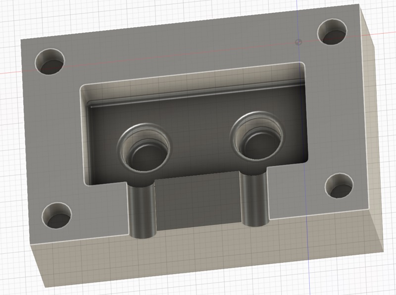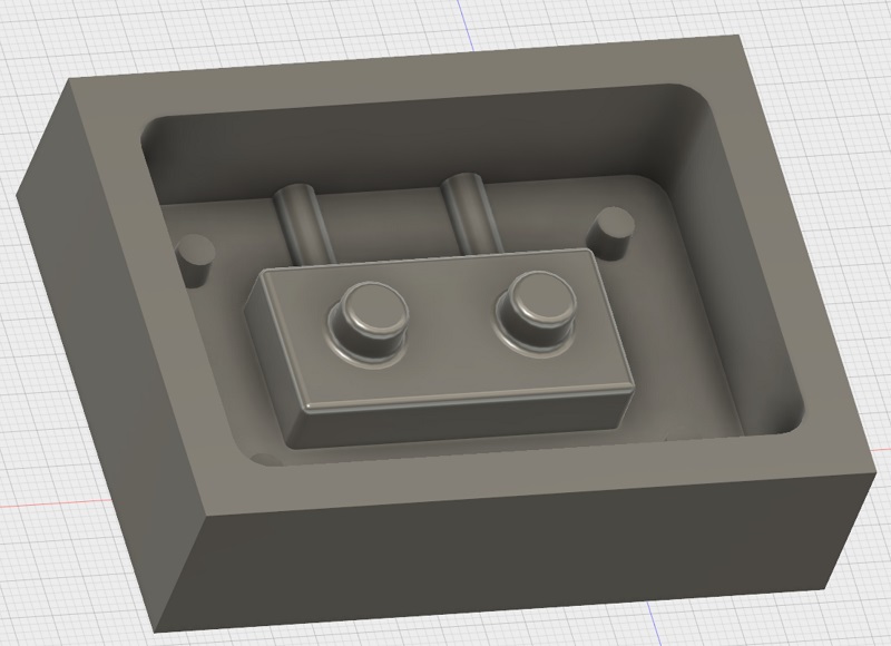 The big advantage of molding and casting is to produce a lot of identical parts with one form. So I wanted to design a casting part which makes sense in a bigger number. In addition I wanted to create a way to connect the single party with each other. So I tried to generate my own LEGO-Brick. Again I used Fusion 360 cause there is a CAM tool integrated. See the final design below: