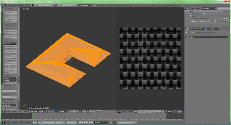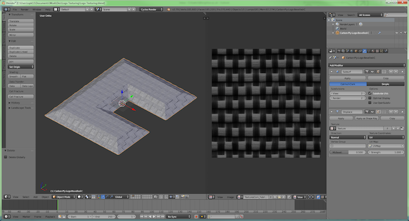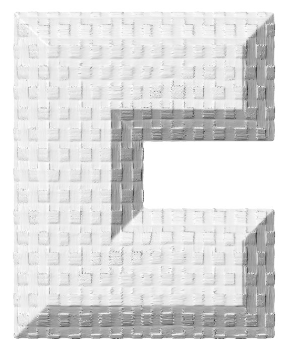 So I called on the help of a friend and colleague of mine, Ollie K who is a genius with Blender and CAD in general, and he helped me to map an image of the woven structure onto the surface, using a greyscale distortion factor to essentially pull the surface up or down an amount that depends on the greyscale value of the pixel. Clever, simple...well not that simple, I couldn't do it, I needed Ollie's help, thanks Ollie! Anyways, here's the texture image that we used in the end.