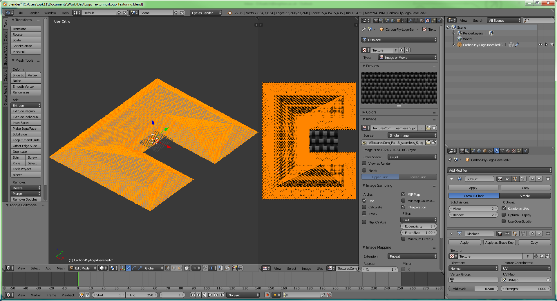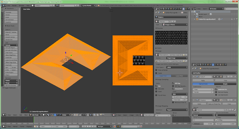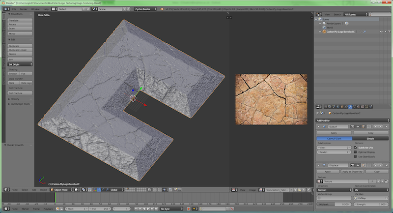 Then further subdividisions were made with displacements generated by the greyscale of the mapped image.