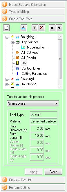Then for Flat/Ball, choose the tool, in our case it was a 3 mm flat end mill and click apply.