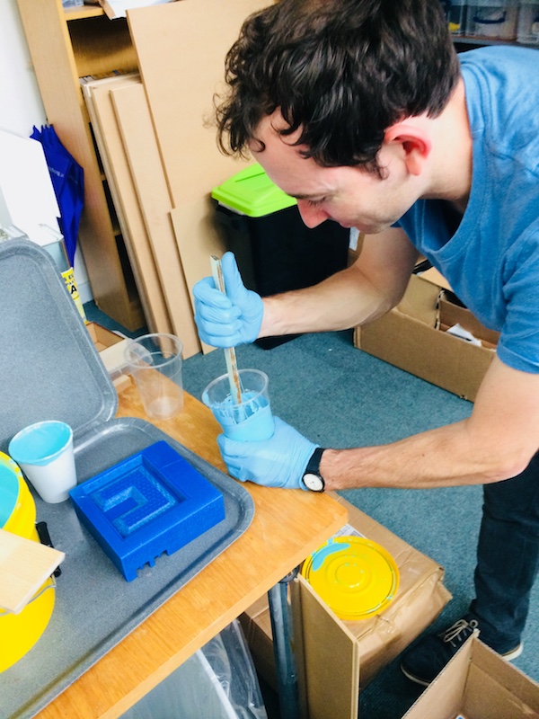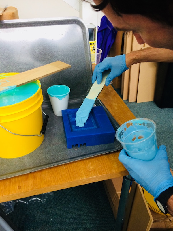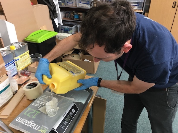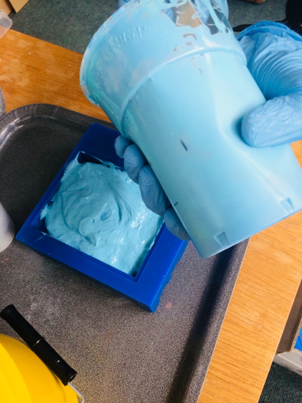 Then once both parts were poured together, the mixing began. Having not used this material before I was not sure of the consistency, and it was only when some of the others in the lab pointed out that it seemed more viscous than when they used it (about 2 months ago now), that I realise the shelf life of the silicone might have run out...especially since it had been open for so long. Worth a try anyway, so I kept going to see if we could salvage it.