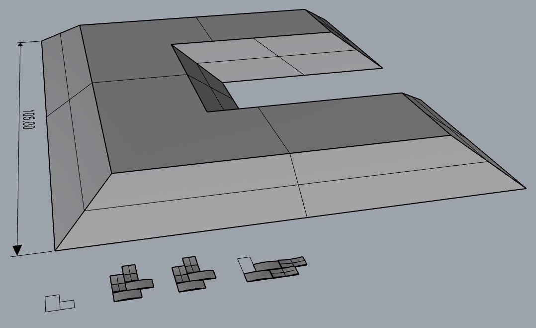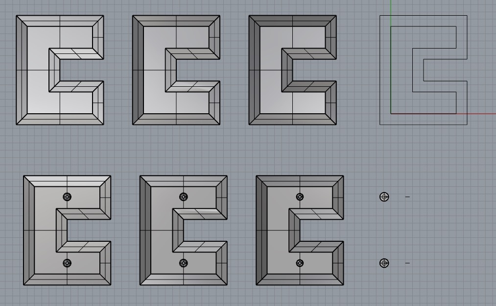 Originally the idea was to use the 'flow along surface' command in Rhinoceros to get this repeating pattern to flow along the top surface of the part, creating a real texture that can be machined out. After a little playing, there were real problems because it only really works on a single surface, and I was essentially using a poly surface with 5 surfaces in a net of the top of the part...it would be fiddly to get it to work. Here is the early CAD model for this anyway.