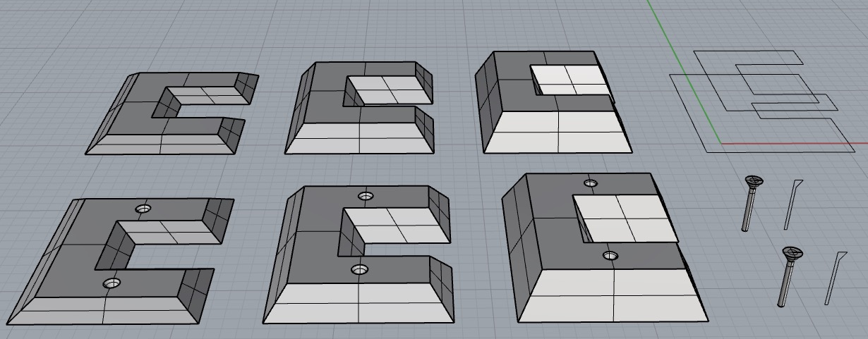 And here is the final result, with all the different logos made using cast gypsum plaster, 3D printing PLA, cast plastic resin, cast silicone female mould, CNC machined wax male mould.