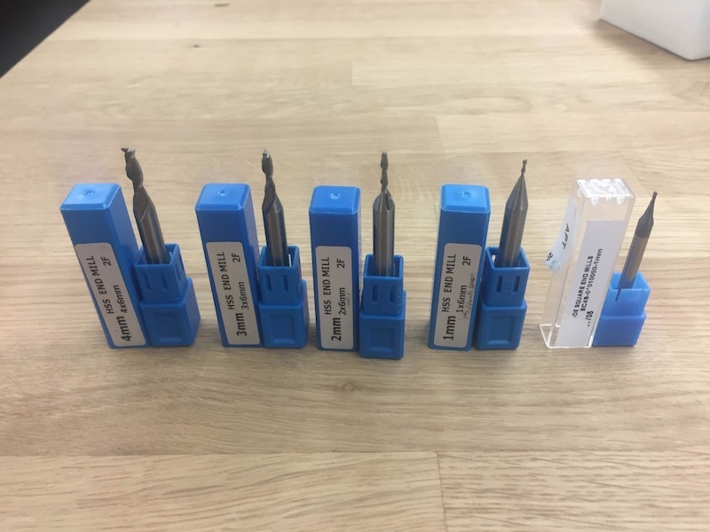 While for this exercise I only needed one cutting tool, we have cutting tools with diameters 1-4 mm. In the software, we need to specify the tool diameter, type (ball/flat), and flute length.