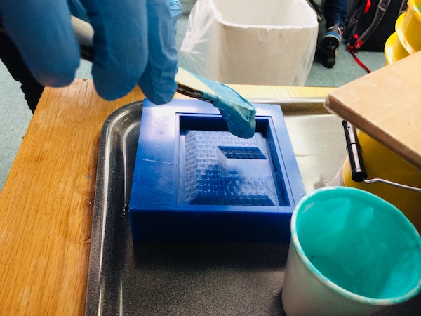 We had a bag of gypsum plaster in the lab so I thought I'd give that a go first. We've done quite a bit of casting with plaster and the detail that can be achieved is stunning, and it could be done quite quickly without much preparation so I started with that.