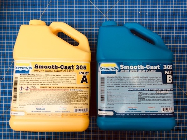 Next up was casting in a white two-part resin: smooth-cast 305 bright white liquid plastic.