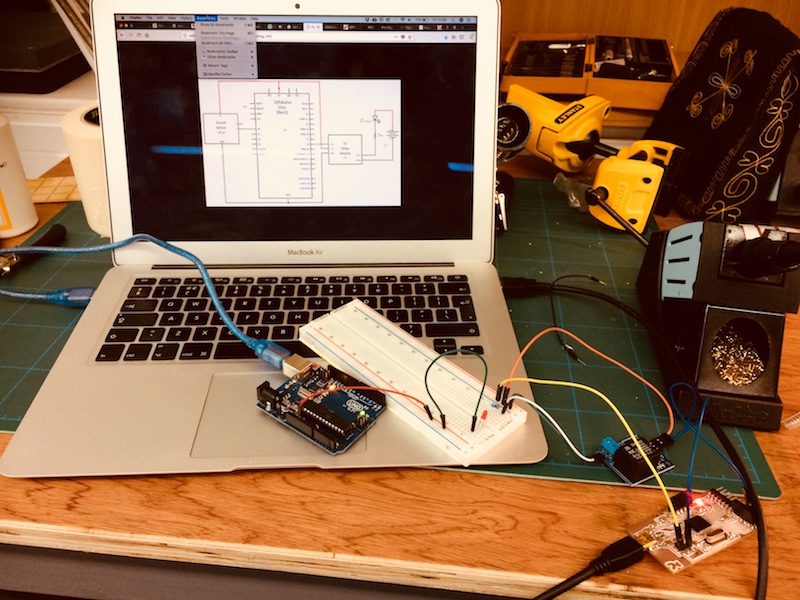 And here's it working with the serial monitor and the leads a little tidier on the breadboard.