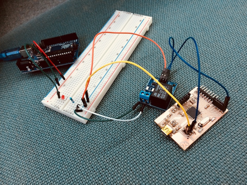 As I revisit this after I've done my final project, I wanted to show that I've also connected up the relay, heating element and thermistor to my own board. Here's an image showing this with the initial relay/heater tests, but also a video showing it all working together.