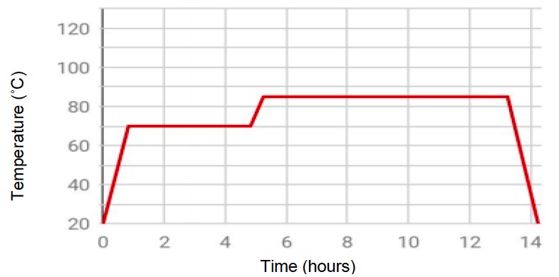 We experimented with both the recommended curing cycle, and a lower temperature curing cycle. This was the 9-hour recommended cycle.