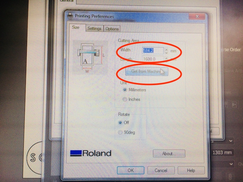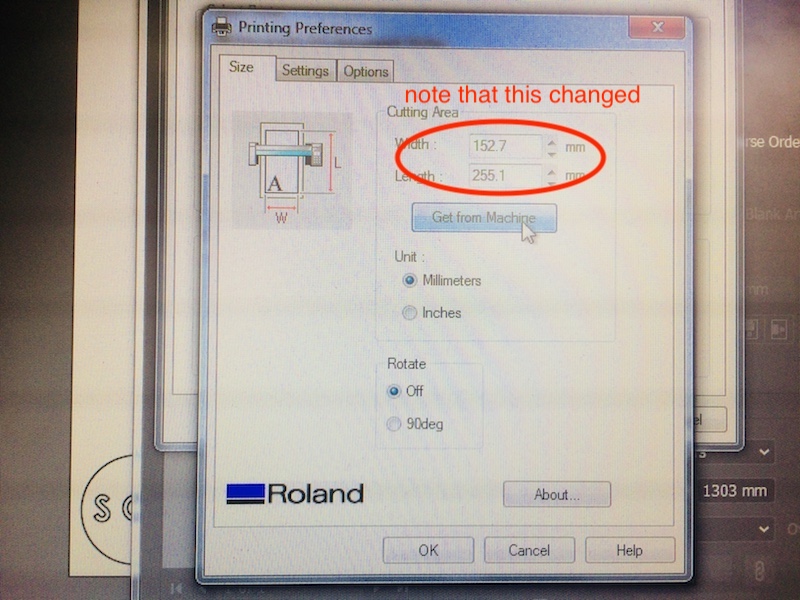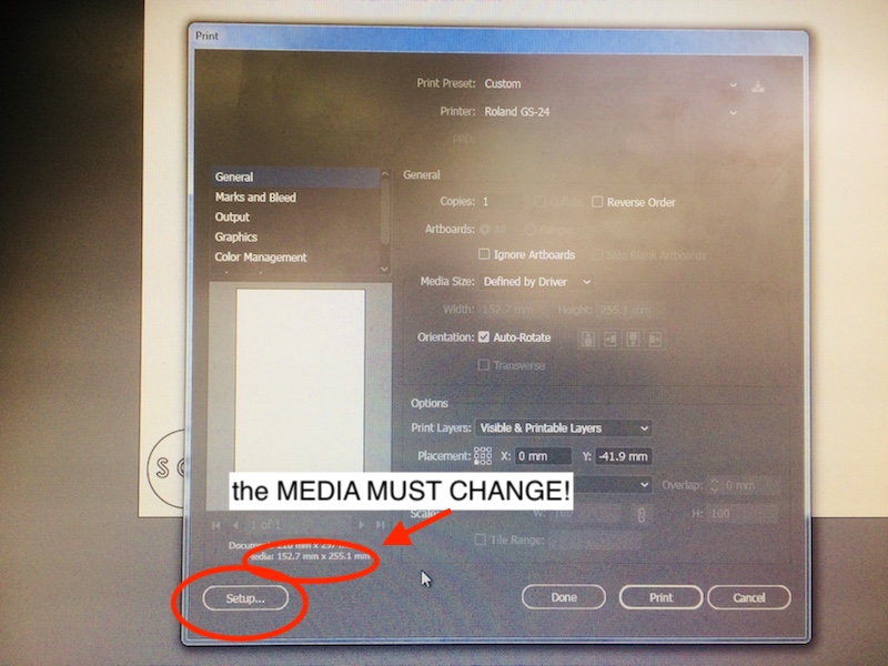 The idea with the setup is to make sure that the media reflects the size of your piece/roll/sheet. Do to this you often have to use the GET FROM MACHINE tool a couple of times from the preferences.