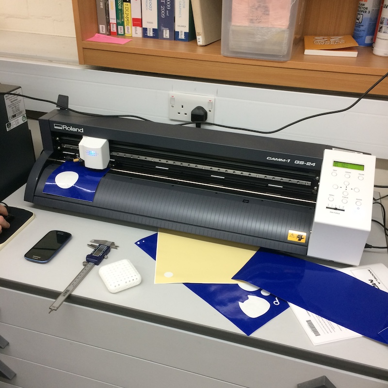 The vinyl cutter is a great machine, cutting 2D geometries out of thin materials using a blade to cut the surface (like a scalpel) by moving both the blade and the workpiece. It's great for cutting vinyl, decal paper, copper traces, and other laminating materials. I wanted to create a fun sticker for my laptop, so I've chosen to immortalise my daughter in a simple graphic created on a tablet using Autodesk Sketchbook. It's a great tool, that I use with her to create drawings that she can colour in. I simply brought in a picture of her on a layer, then made that layer a slightly translucent, then created a new layer over the top of that and drew with lines on that layer. Once I was happy with the drawing, I hid the layer below with the image on it and that left me with the file (.jpg) ready to export to Illustrator. I could then cut directly from Illustrator. Here's the original pic and the graphic I created.