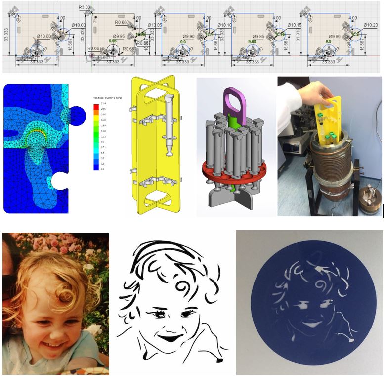 I have also been working on producing a press fit syringe holder for a pressure vessel we have on loan from a colleague in Edinburgh. I drew these on Solidworks as I was quite short on time and I know SW well. I designed it so that I could parametrically generate the clip holders to test various diameters, degrees of taper and wall thicknesses so that I could test which holder shape/size held the syringes without breaking, but with sufficient friction for it to hold the syringe in transit. I did an original design, but found it to be not so stable and not ideal structurally, so I redesigned it in the following few days. Here is the original design (left) and the new design (right).