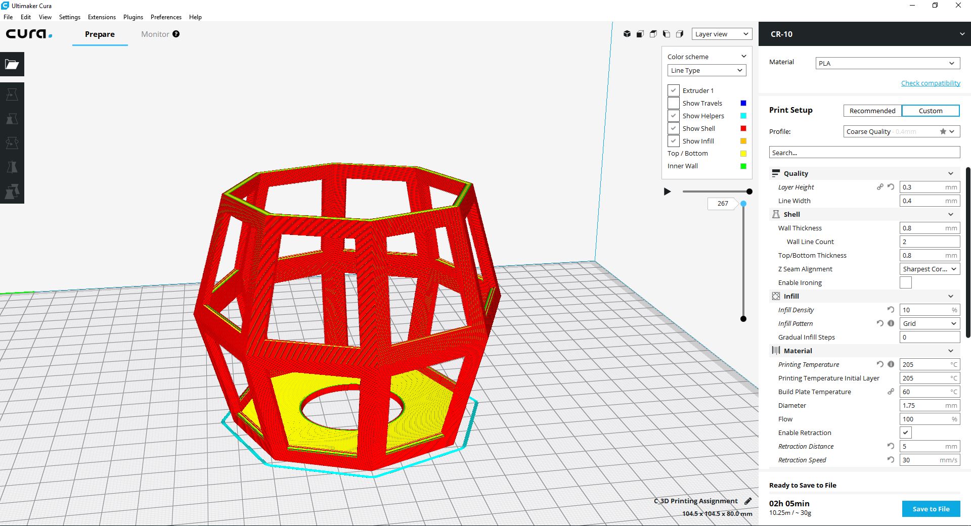 For the Walls, CR-10 couldn't print all of them. It's only print two walls form the left.
