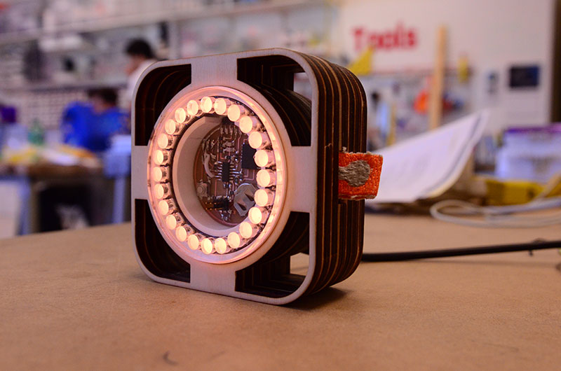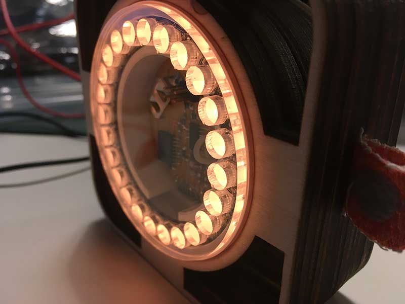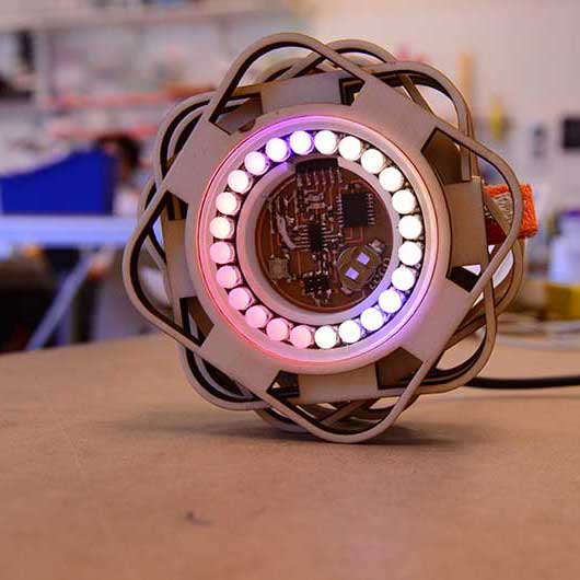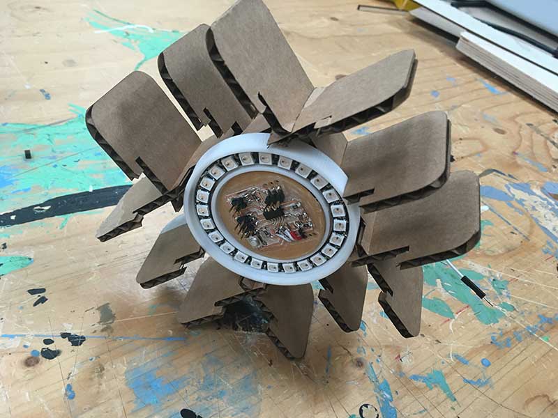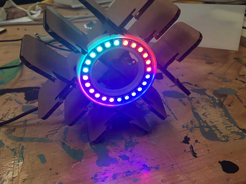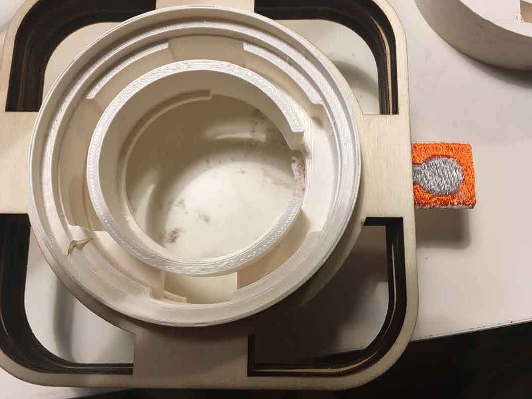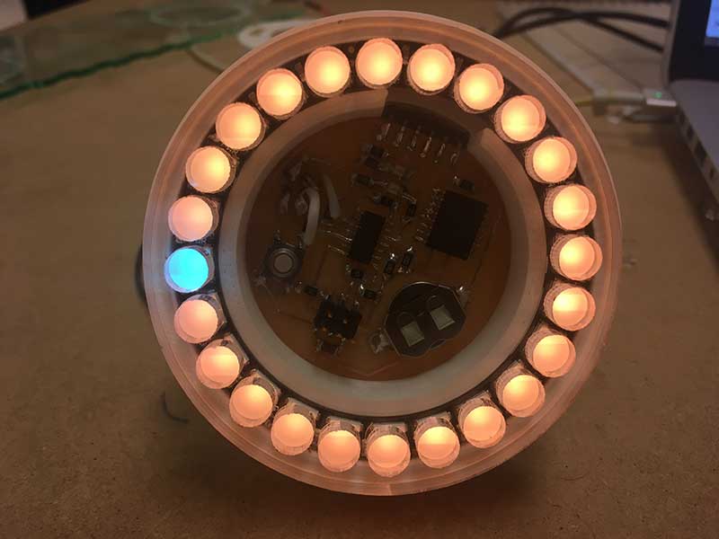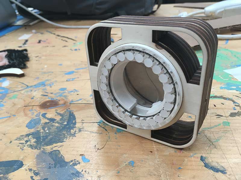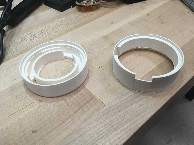 This early model was created as a way of suspending the NeoPixel ring and circuit holder within a structure.