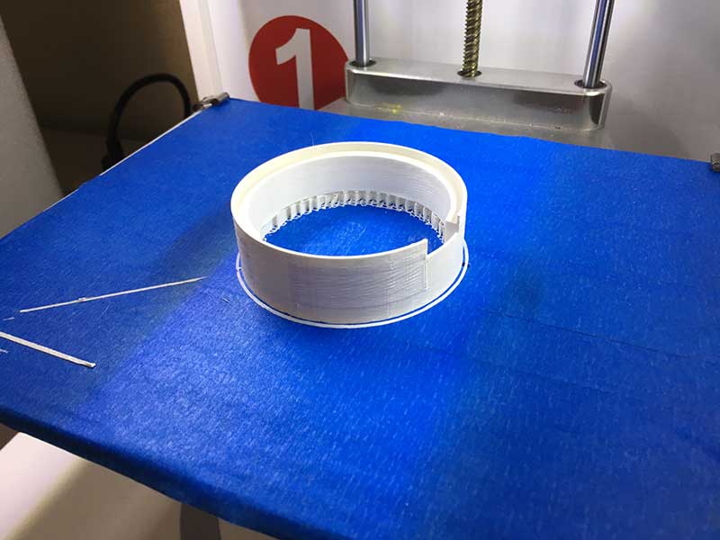 The core of the body is printed using a white PLA. The print took about $50 minutes per side using the low quality setting. What is nice is that this matte white filament looks quite good at the low settings. The visible layering actually gave a nice texture on such simple geometery.