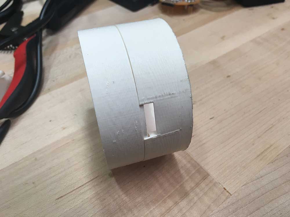 The 3d printed core of the the clock had a notch cut out wich is meant to line up with the wooden slice with the notch in it.