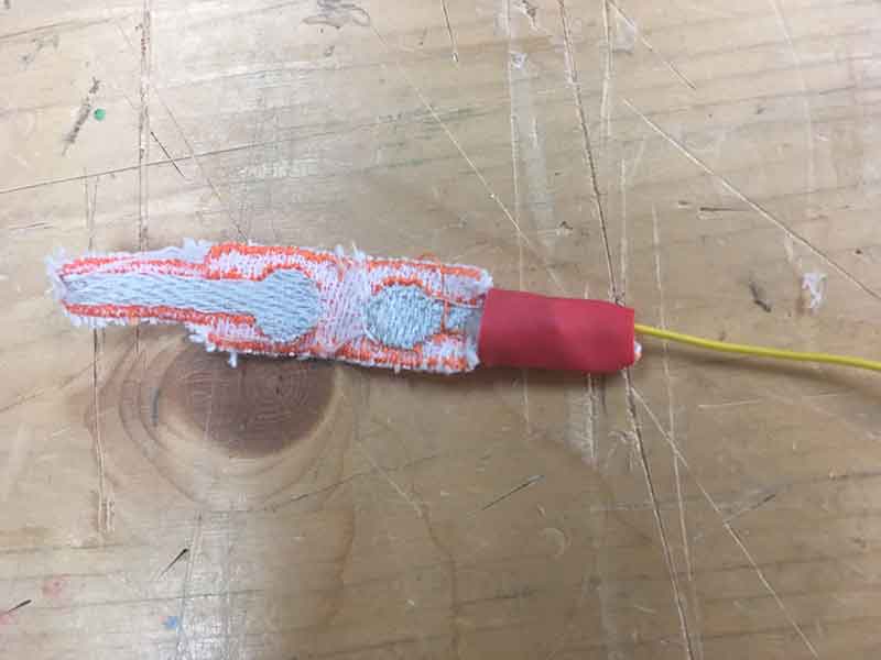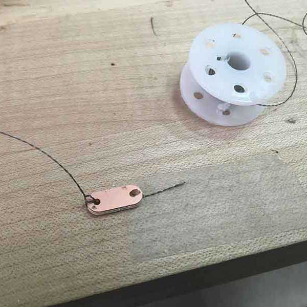 I made another little copper part which I could solder hookup wire to and also sew conductive thread.