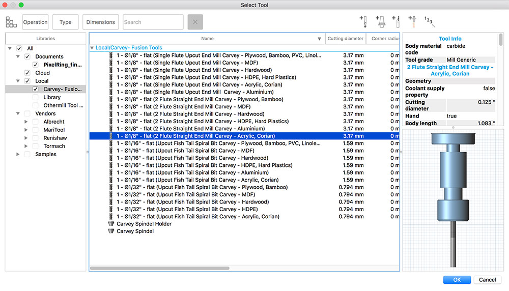 The first setting was to choose the right tool. I used only one tool for this entire milling process.