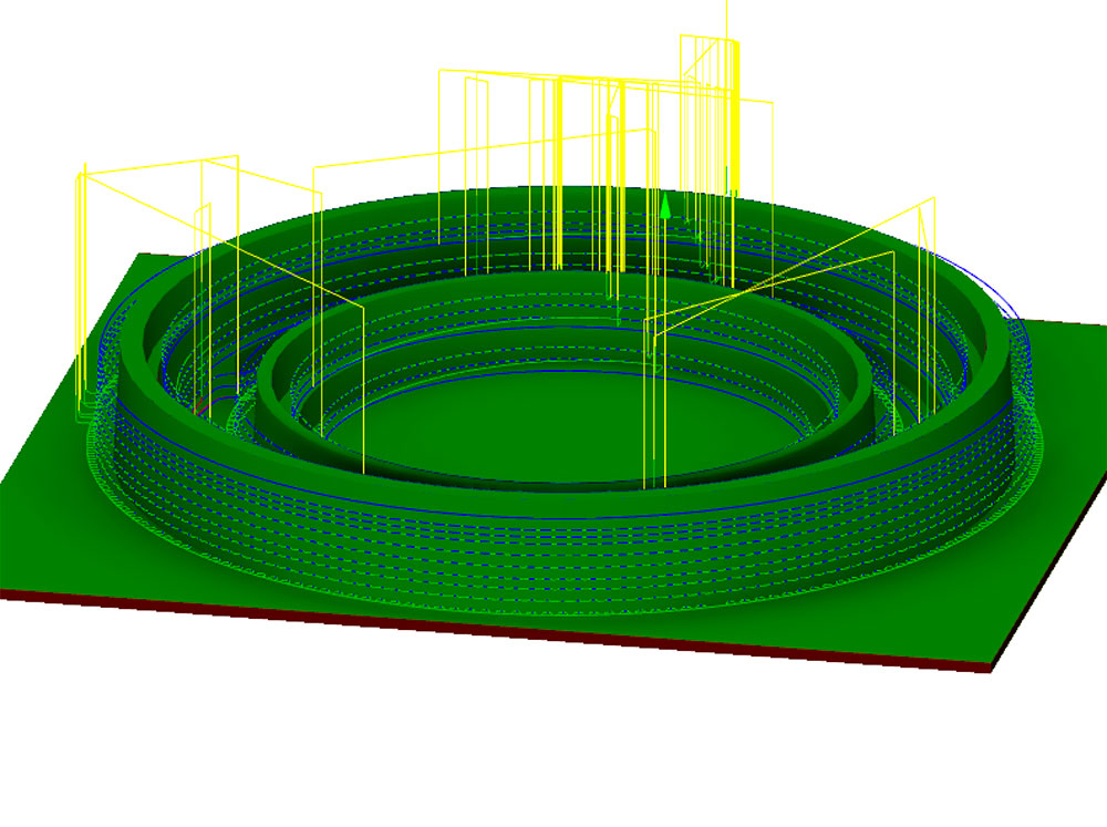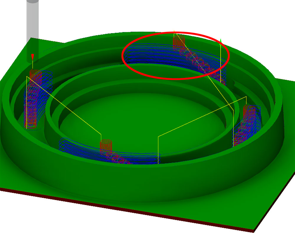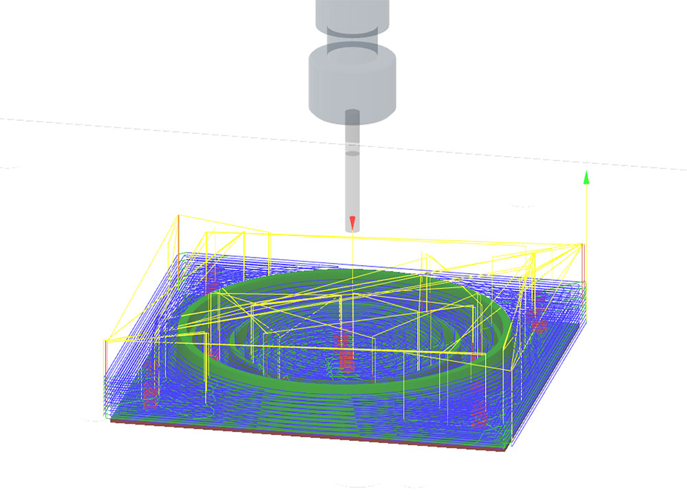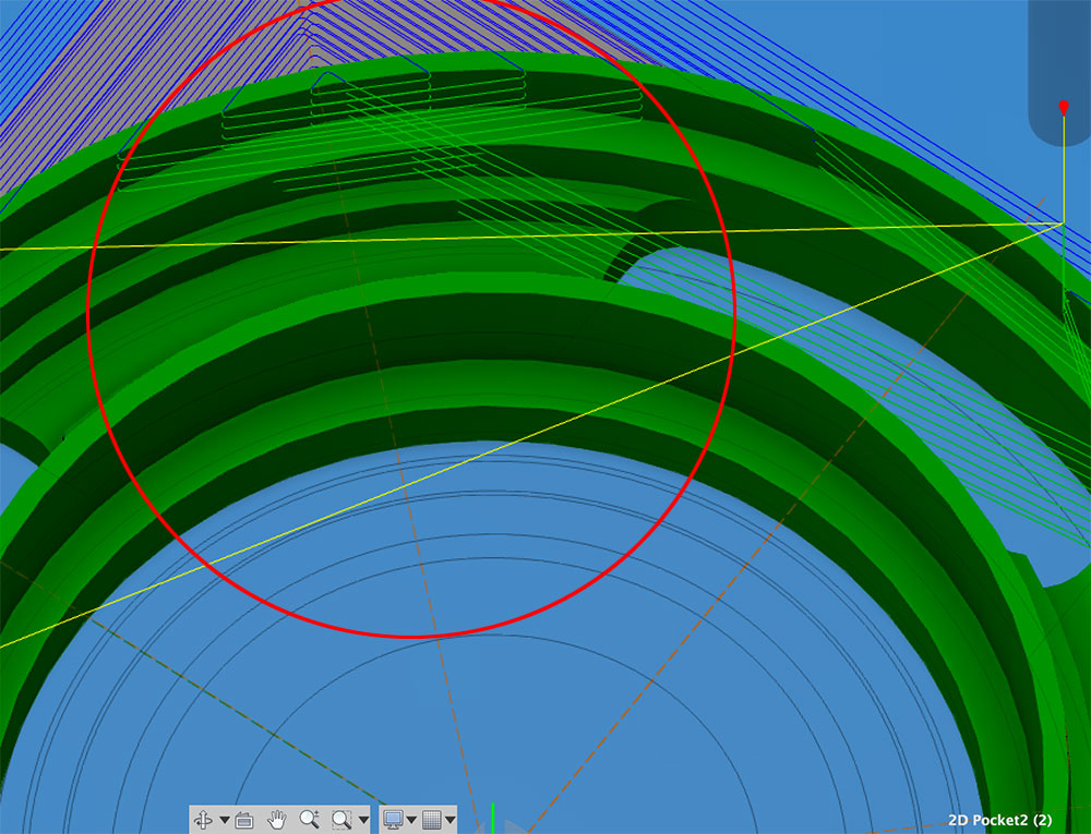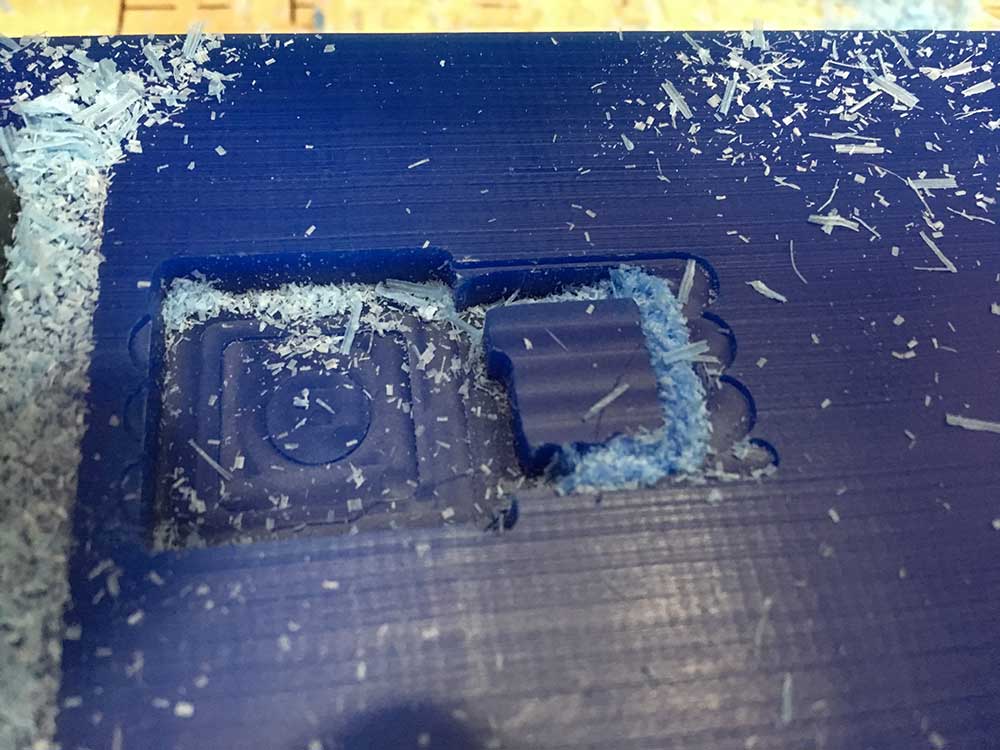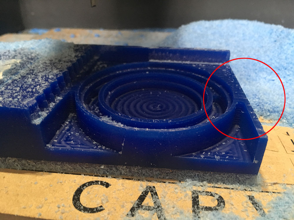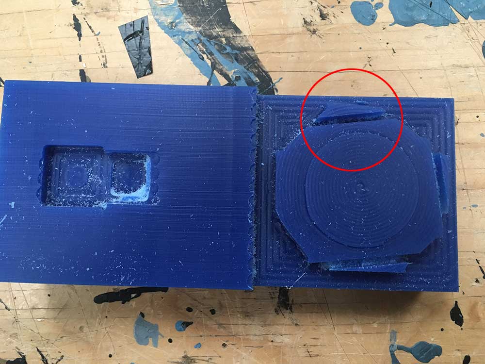 As you can see, I milled through the pin that was in the model. If you look at the image above of the tool path, you can see it spiraling down through the portion of the pin. The boundary geometry for that small pin in the middle of the model was not clearly defined when I sent over the job.