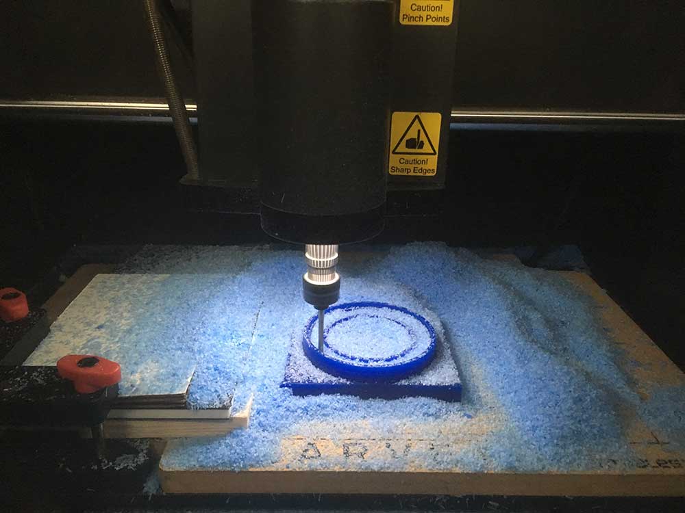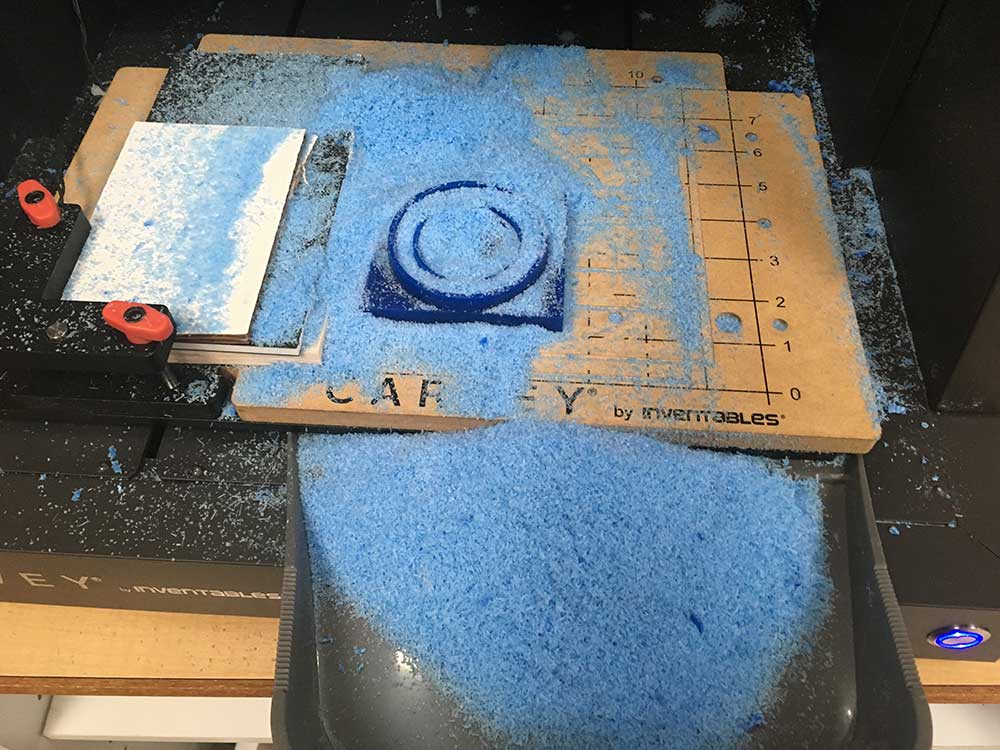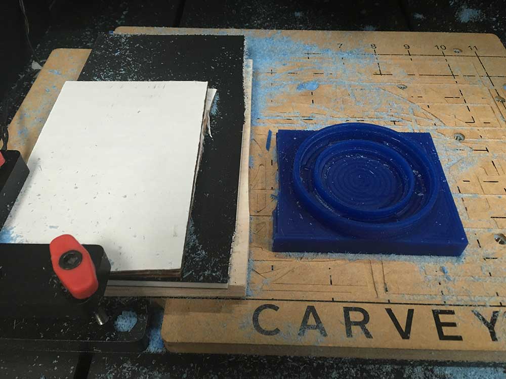 Before starting to program all my tool paths, I visited a variety of forums and sites to figure out what the optimal speeds and feeds were for milling wax and also for milling wax on the Carvey. Here are the links I visited: