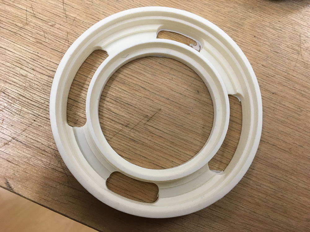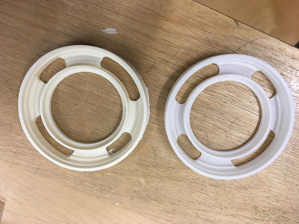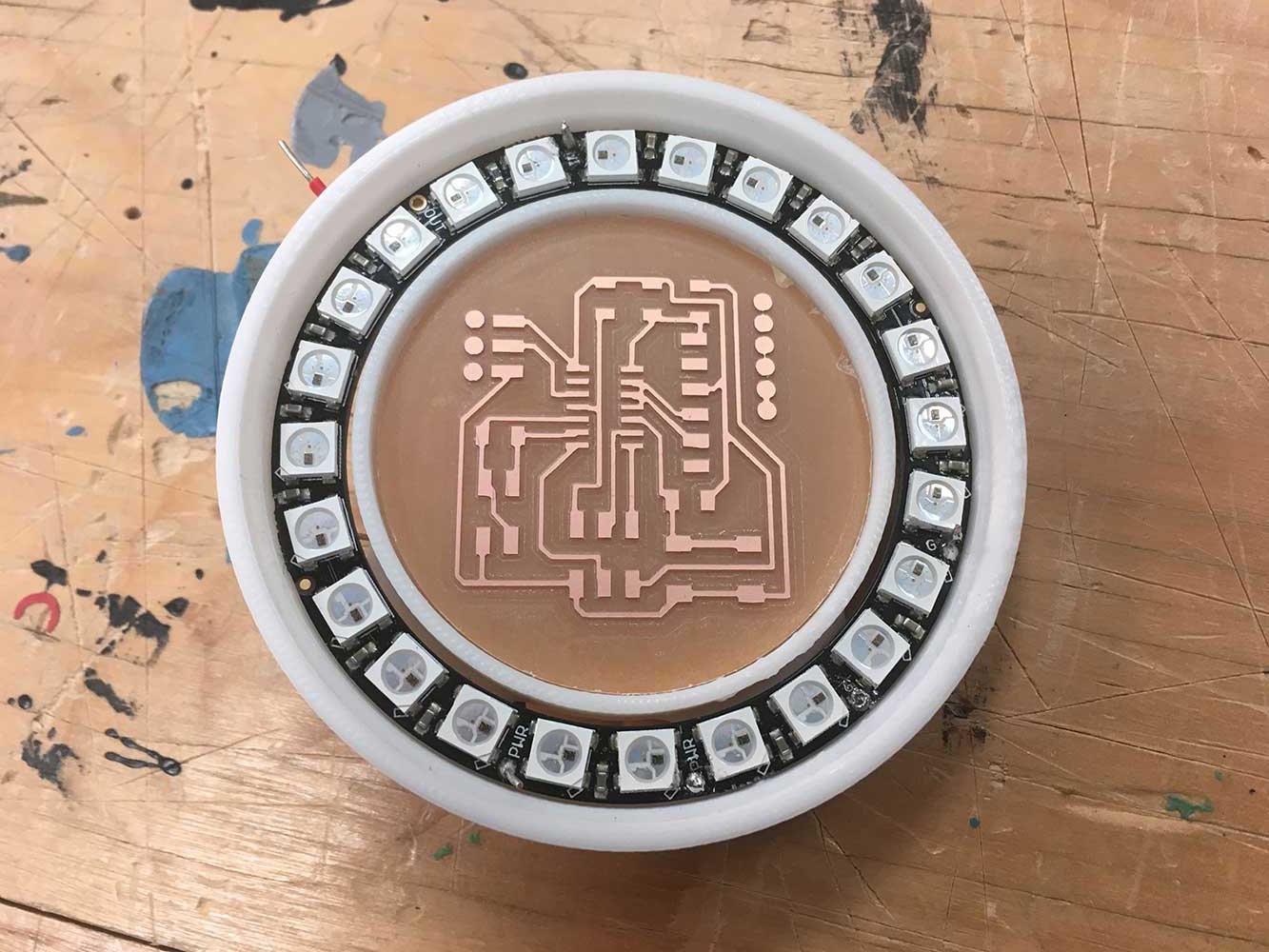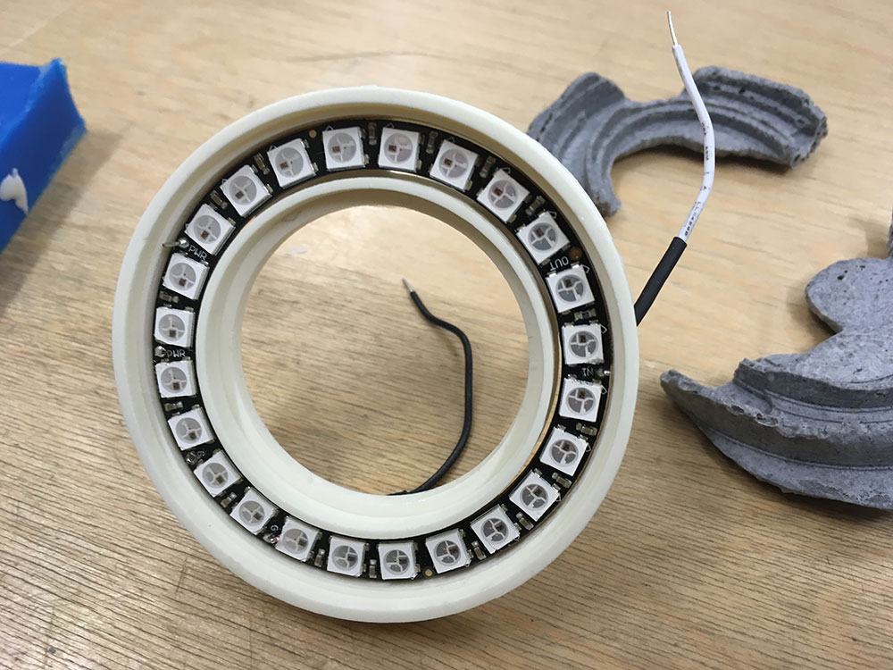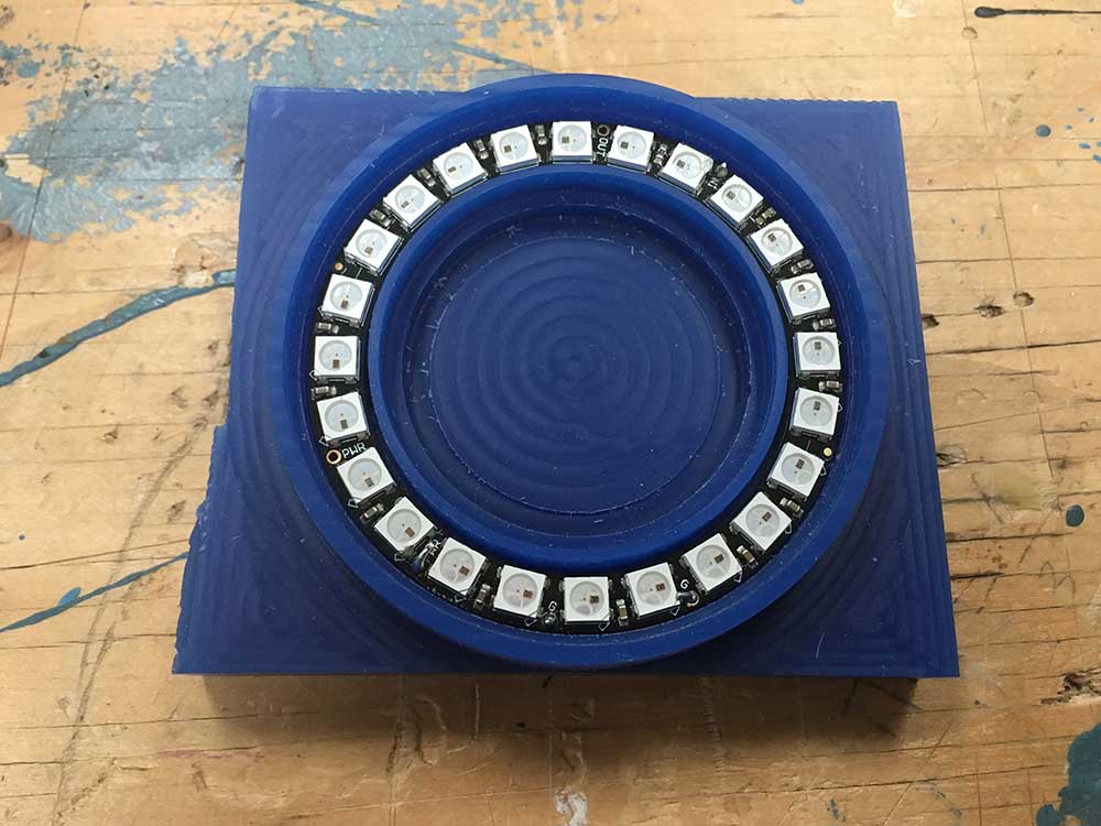 I decided I would do this again. I made some adjustments to my model by changing the wall thickness so that I would have a little more room to play with. Of course, I was limited by the fact that I was bound to the dimensions of the 24 LED NeoPixel ring I was using.