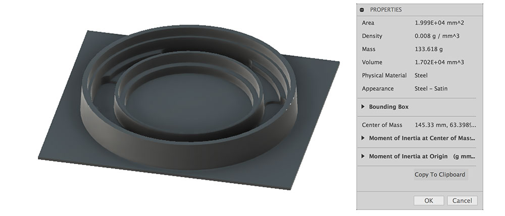 Before milling my part, I decided to attempt a quick test to check the workflow and test the Carvey post processor. I modeled a small shape and sent it through. I won't go into detail but I was happy that I successfully milled the wax. However, when it completed I realized that my tool path was wrong.