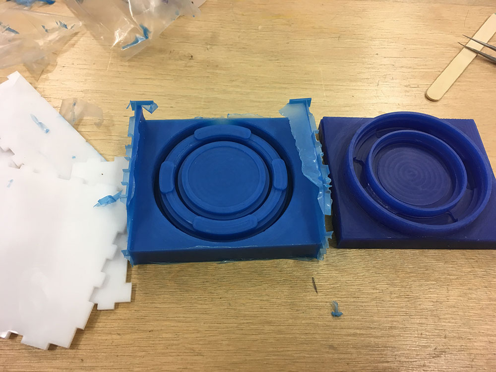 I was excited to dig into 3d milling and to learn more about Fusion 360's compatibility with the Carvey mill. Once I had my model created, I had to prepare the tool paths for milling. The clamp on the Carvey can take up a lot of space and everything is milled in relation to it. On other machines, like the Roland series, you can manually position your milling bit and set the origin of the x,y,z accordingly. With the Carvey, everything starts at the clamp. This proved to be a bit of a problem as there would never be enough space and material to mill my model near the smart clamp. Also, as I made mistakes I had to work with smaller pieces of wax. The smart clamp took up to much space and I had to find ways to "trick" the machine.