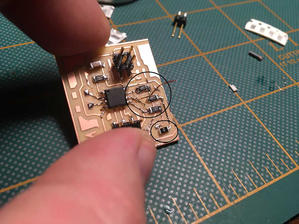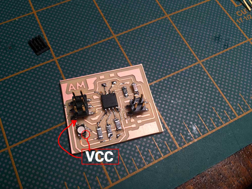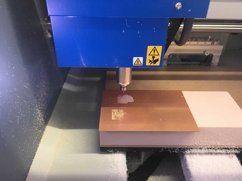 Traces were burning out on me. This board was cut with FR4 pcb material. We were careful with it and it was milled in the machine enclosure. It seemed that the traces burnt off more easily. Anyways, I had to get creative to find a solution to fix this problem so I started using wire and jumpers. I would suggest NOT to use braided copper wire. It is harder to work with and can get messy. There is always the chance that some strands of copper will stray away and create shorts.
