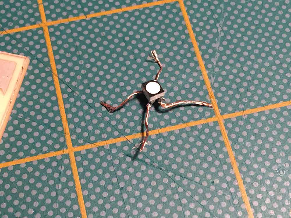 Tthe 1206 SMD 0 ohm jumpers were not going to work. I soldered wires to the bottom of the LED thinking this would make it easier.