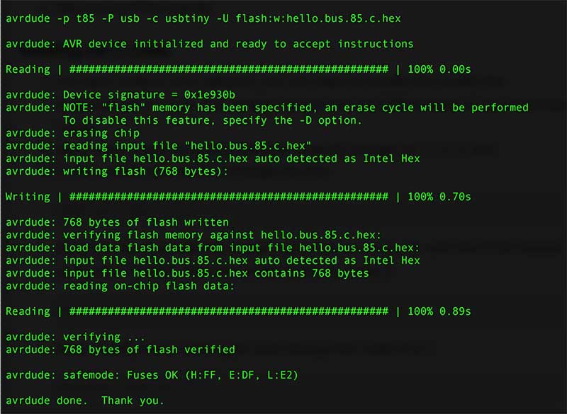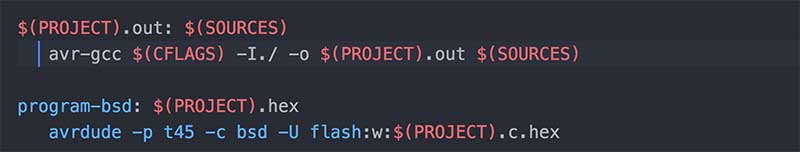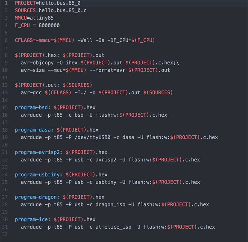 sudo make -f hello.bus.45.make program-usbtiny