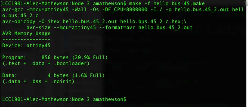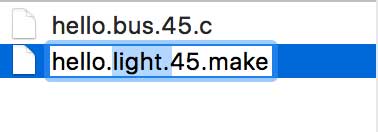 Using Terminal, I navigated to the folder containing the makefile I just renamed ("hello.bus.45.make") and typed: