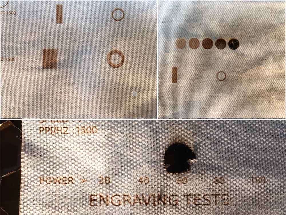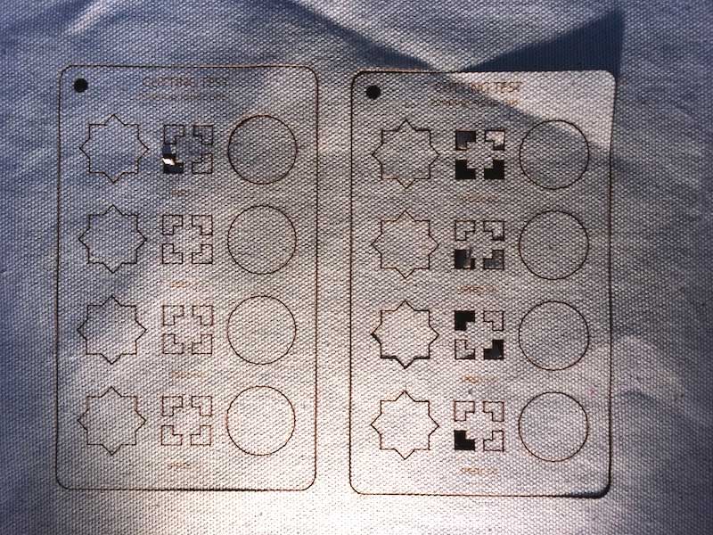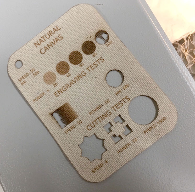 Once my initial tests were done I had a good idea for the minimal power settings needed to cut the canvas and a threshold for the engraving.