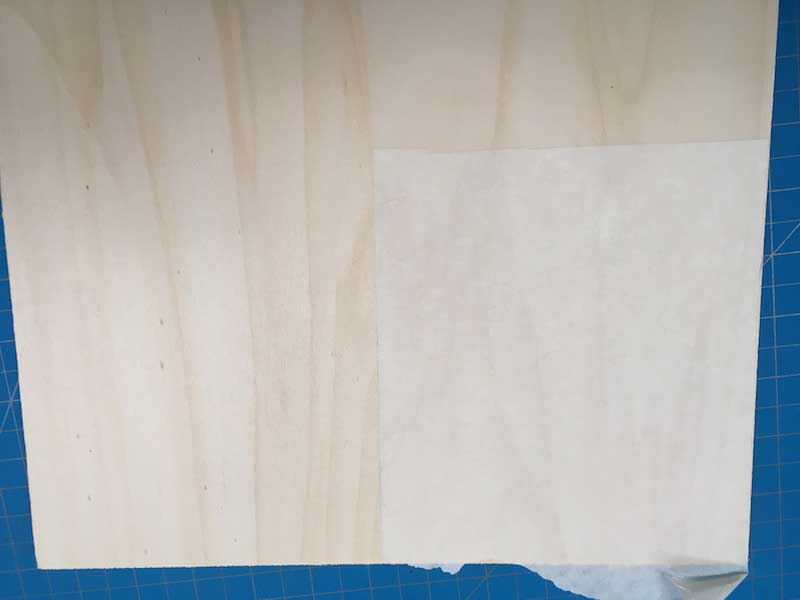 To start I put transfer tape on the plywood. This helps keep the surface clean from the smoke that can stain the surface when cutting.