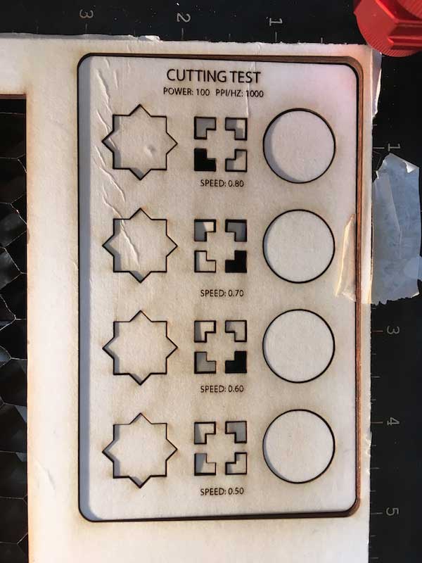 I learned from this test that the difference in settings can be quite large between seemingly similar material. These tests will have to become regular practice in my design process.