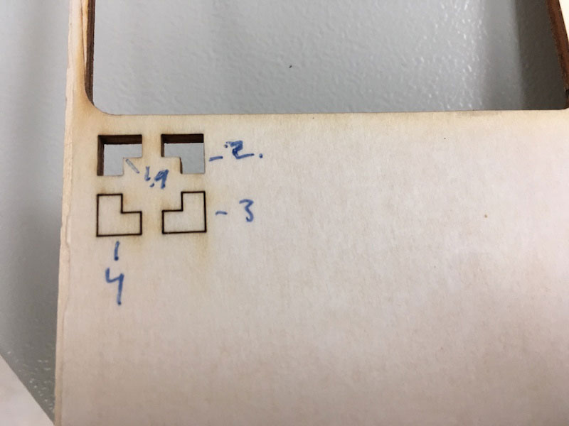 The next test I did was trying different speed settings to find the minimum power/speed required for a clean cut. You can see from my markings, the parts even cut through at a speed setting of 2. This is 1.05 faster than the generic plywood setting from another lab however it rquired a slight push. at 1.8 the material cuts completely through with no push required.