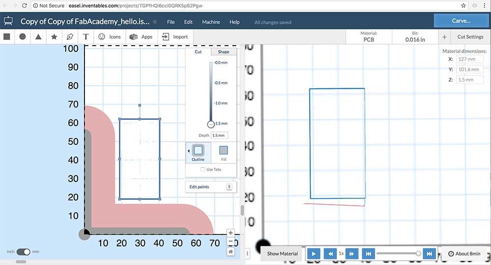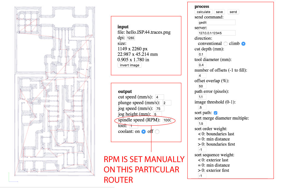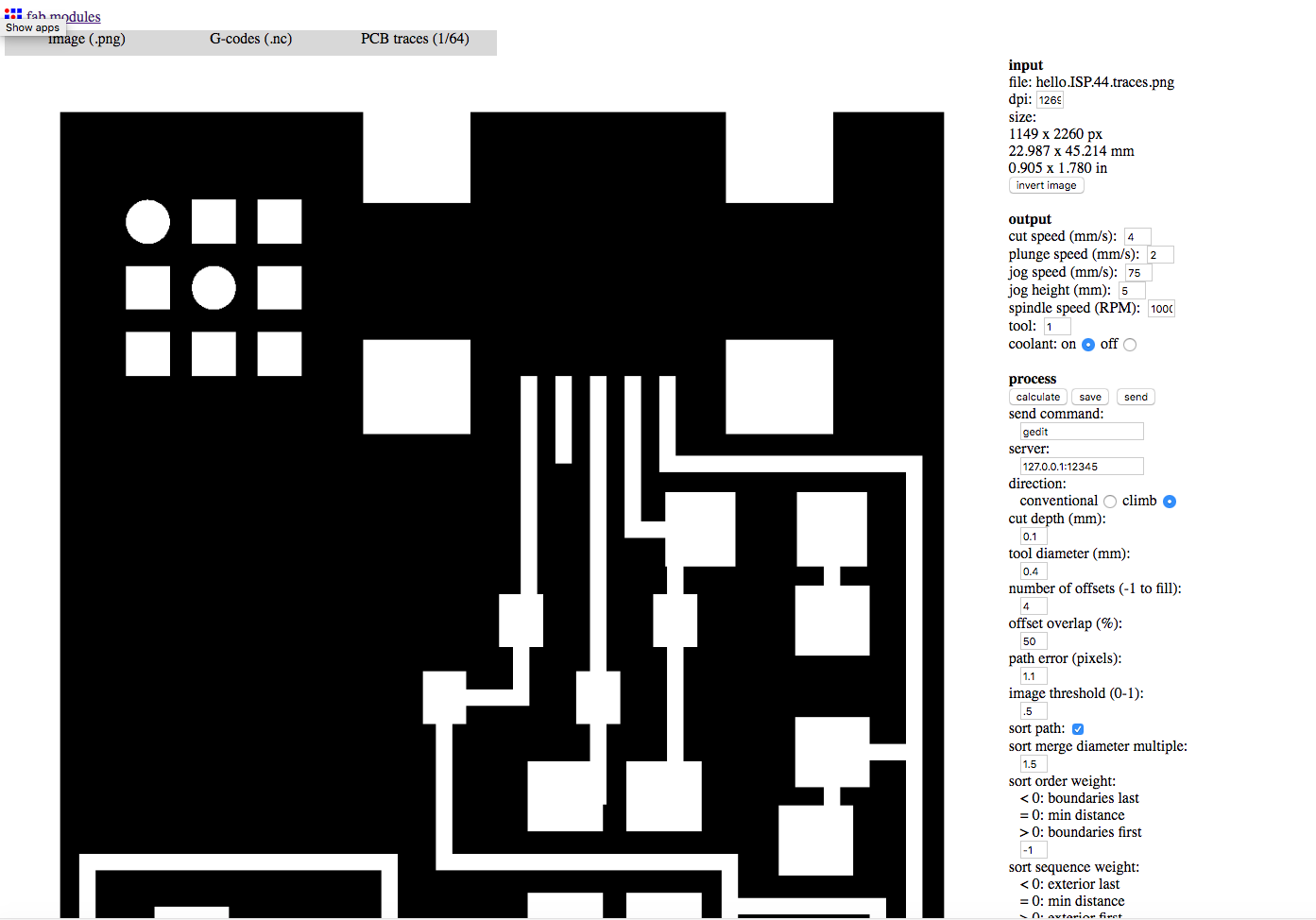 We used Fab Modules to process the .PNG into G-codes(.nc)