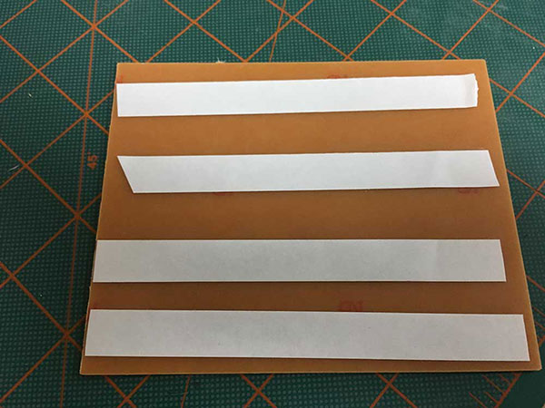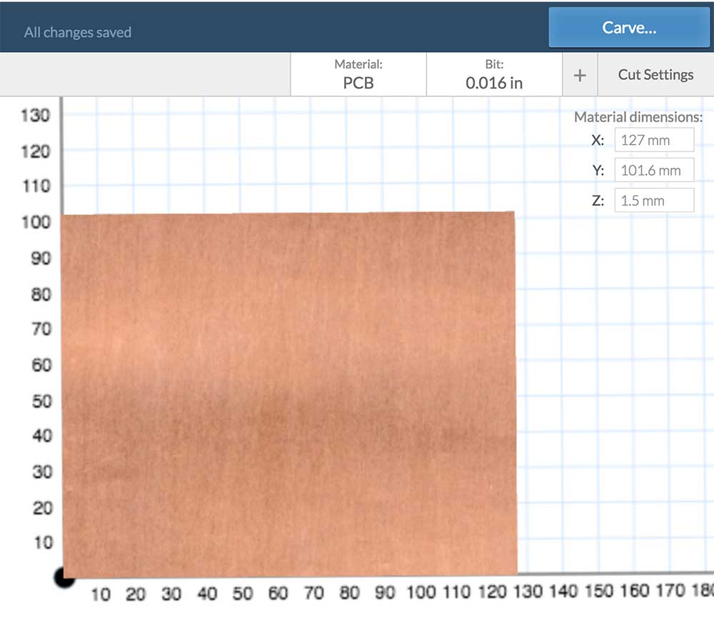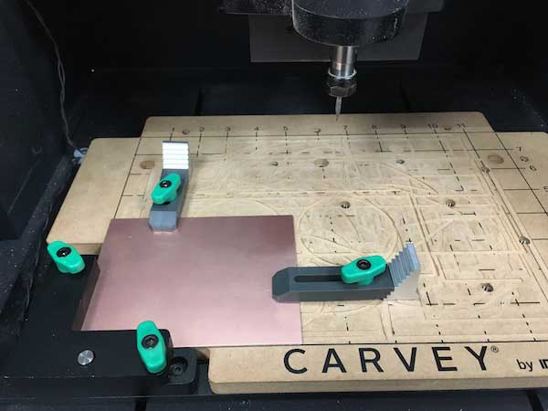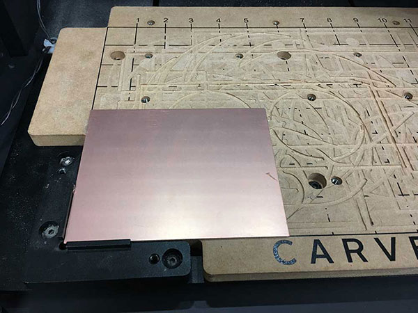 Next, we need to place our PCB FR1 board on the flat surface using double-sided carpet tape and then we need to turn on the machine (not the router) and set the origin or "home" which is "0" on the x,y, and z, axes.