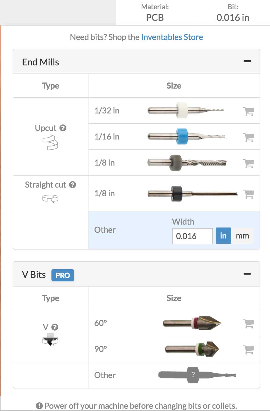 NOTE: Select 1 inch increments to move the router in large steps but as you get close to the origin or place you want your job to start, move in 1 mm increments and then 0.1 mm as you lower your Z axis. The bit should be close enough to the PCB board that a paper rubs when you slide it underneath.