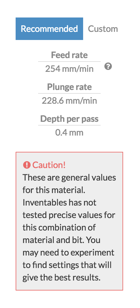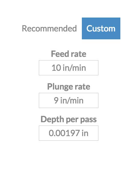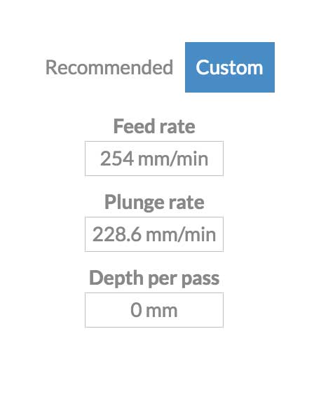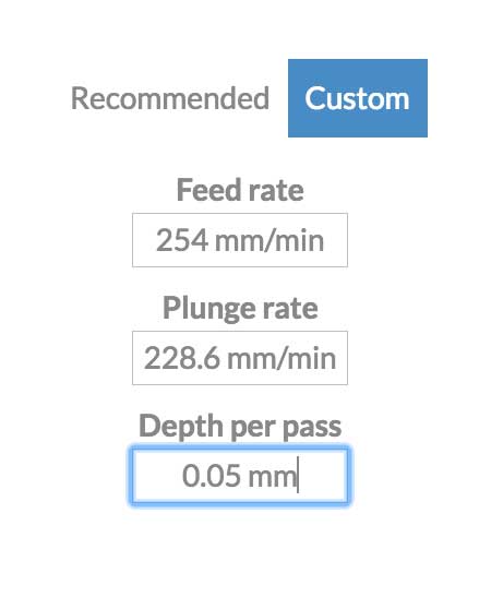 Here are the default settings for the échoFab mill. Because it is a router in a milling machine, the RPM setting will be ignored as this is set manually on the router which was set to "6".
