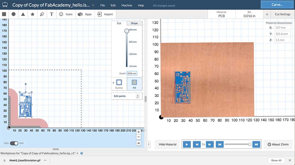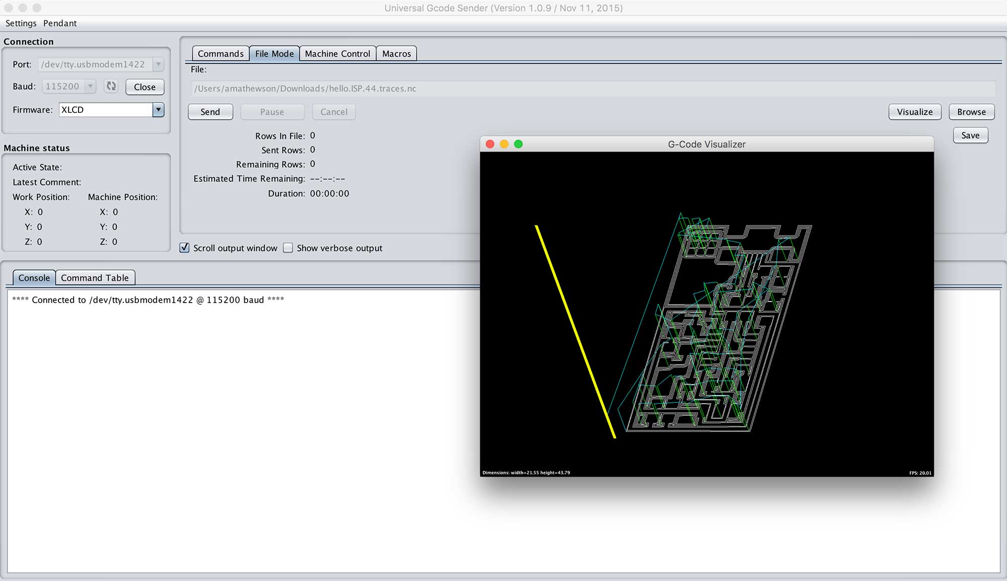 Navigate to the File Mode tab. Browse and find the hello.ISP.44.traces.nc file that was generated from Fab Modules and load it. You can press the "Visualize" tab to make sure the file looks as it should.