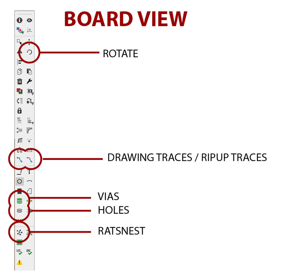 ---> Ratsnest - the ratsnest tool is useful to clean up your board as you move items around. It will direct you to the closest GND or VCC and help you visualize when your parts are properly connected using airwires.