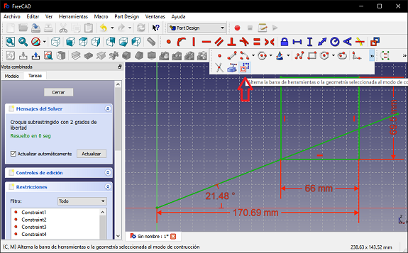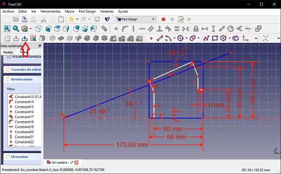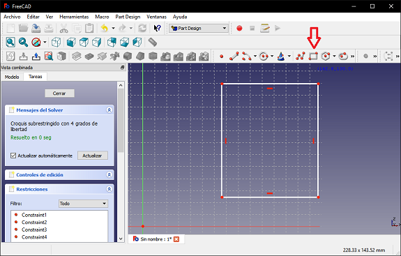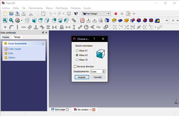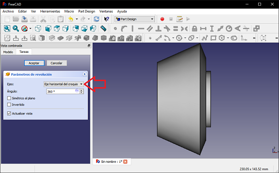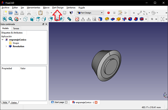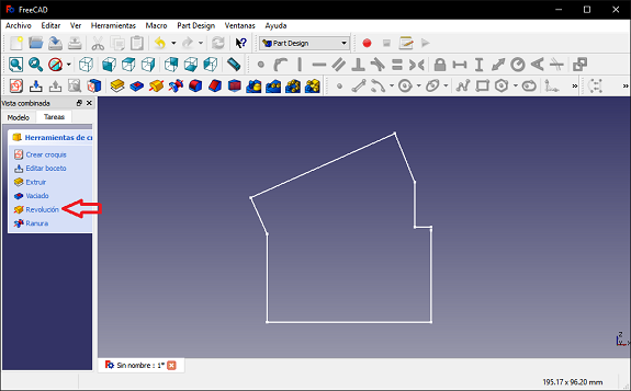 In FreeCAD, I selected the "Part Design" scenario and