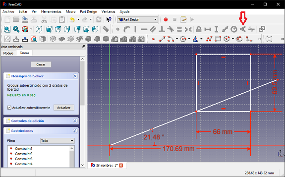 I inserted a diagonal line from point 0,0 with an angle of 21.48 °