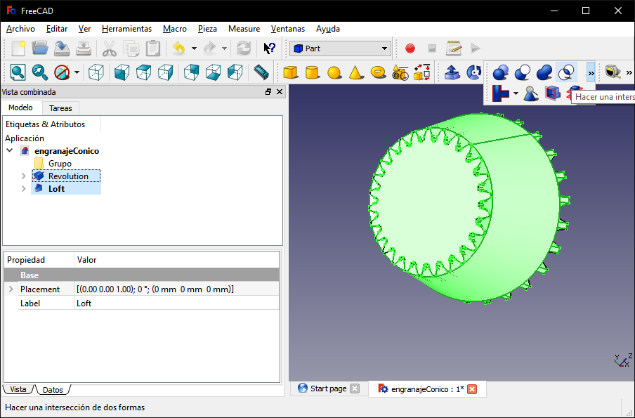 Then I intersected the two objects: "Revolution" and "Loft" to create a single object.