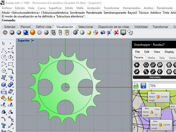 There is a lot to explore in 3d software, I liked the ease with which you can work complex parts with FreeCAD, I did not know it. In the case of Rhinoceros, I had already received classes on the use of its parametric component: Grasshopper. For now I will take advantage of the 90 day license of Rhicoceros and some tasks I will do in FreeCAD, especially gears.