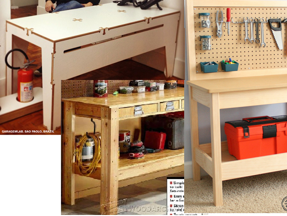 I looked for some work bench reference models, I found some examples of press fit applied to a table, the rest were work benches made with wood.
