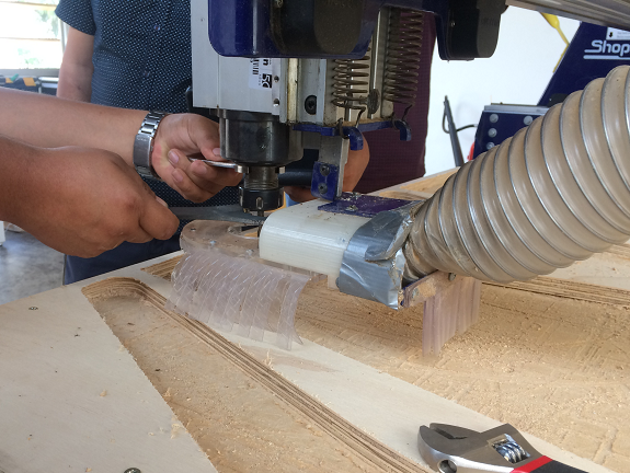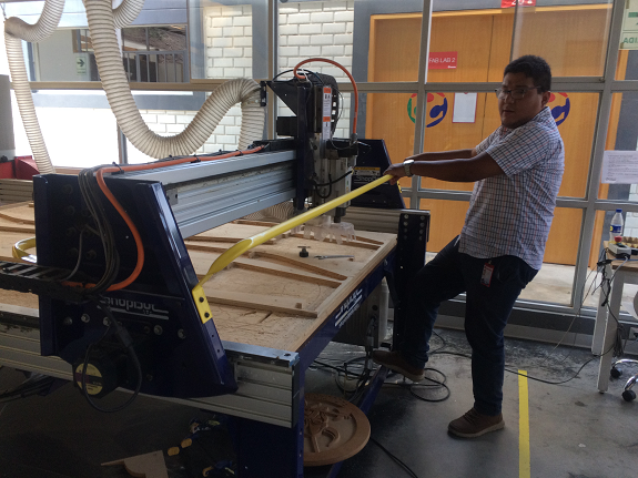 Our instructor of the CNC machine Shopbot Víctor Pimentel, showed us the main activities of operation of the machine.