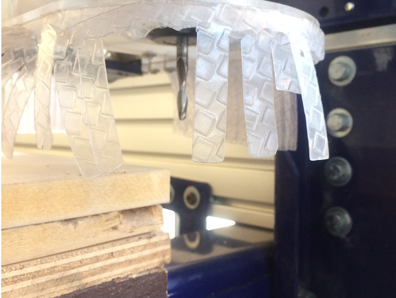 During the milling of the second board a couple of pieces moved from their places. Fortunately, it was not serious, the drill was not broken, and nothing went flying.