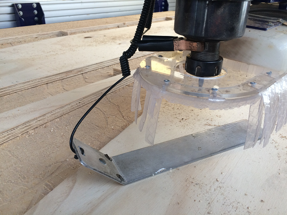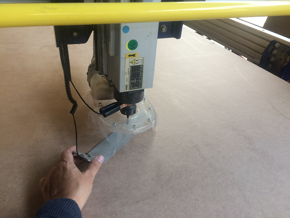 From the program the calibration of the Z axis is activated, at that moment, the milling bit goes down and stops as soon as it touches the metal plate, this process is repeated twice. After this, you are ready to mill.